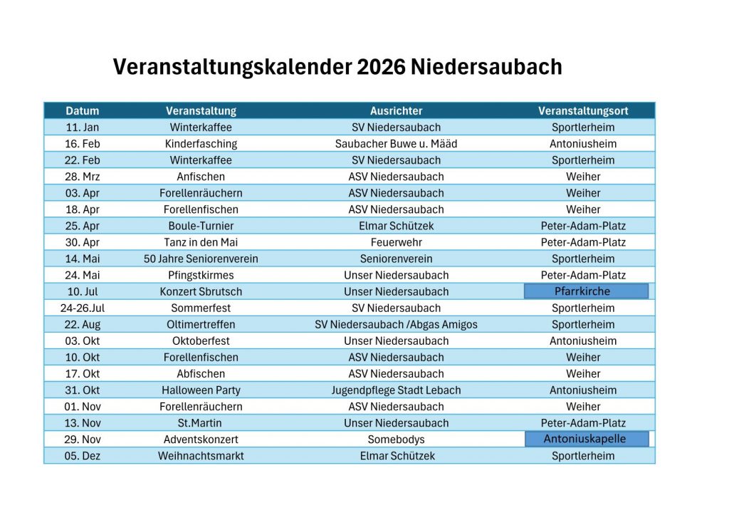 Wir freuen uns auf Euer Kommen in gemütlicher Runde der Dorfgemeinschaft.