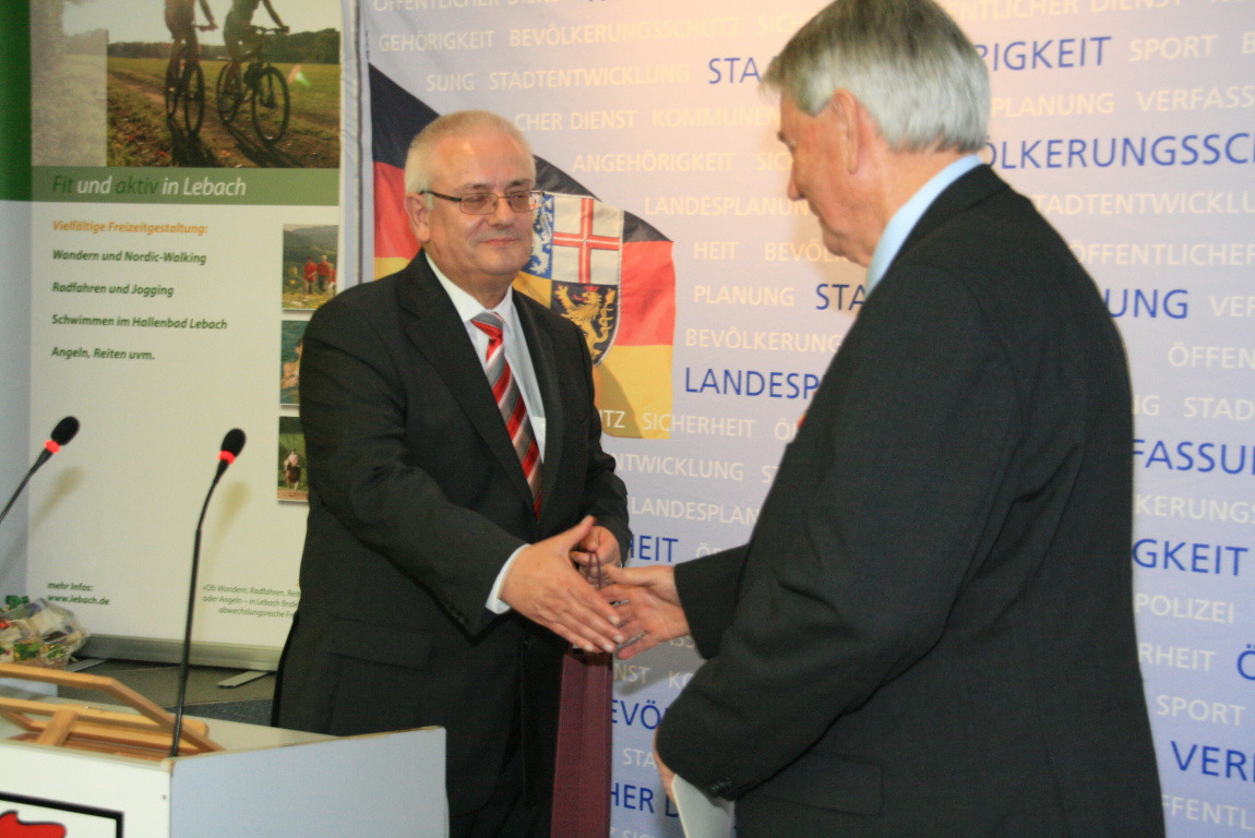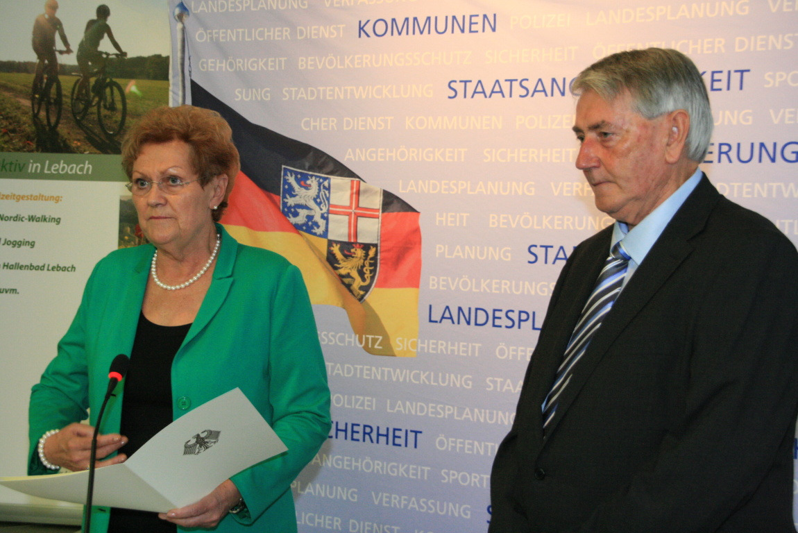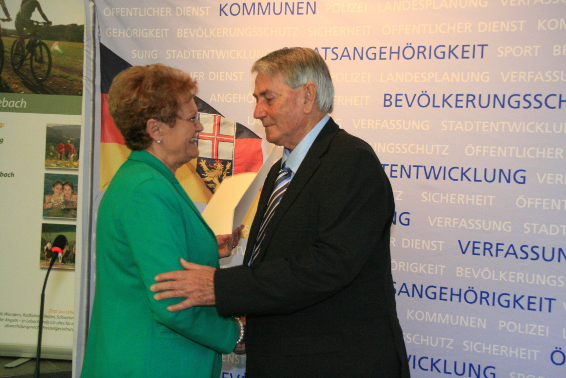 Innenministerin Monika Bachmann: „Sie haben sich durch Ihr Engagement in Ihrer Heimat zu einer zuverlässigen Persönlichkeit für die Interessen des Sports und kommunaler Belange gemacht. Dafür gebührt Ihnen Dank und Anerkennung.“