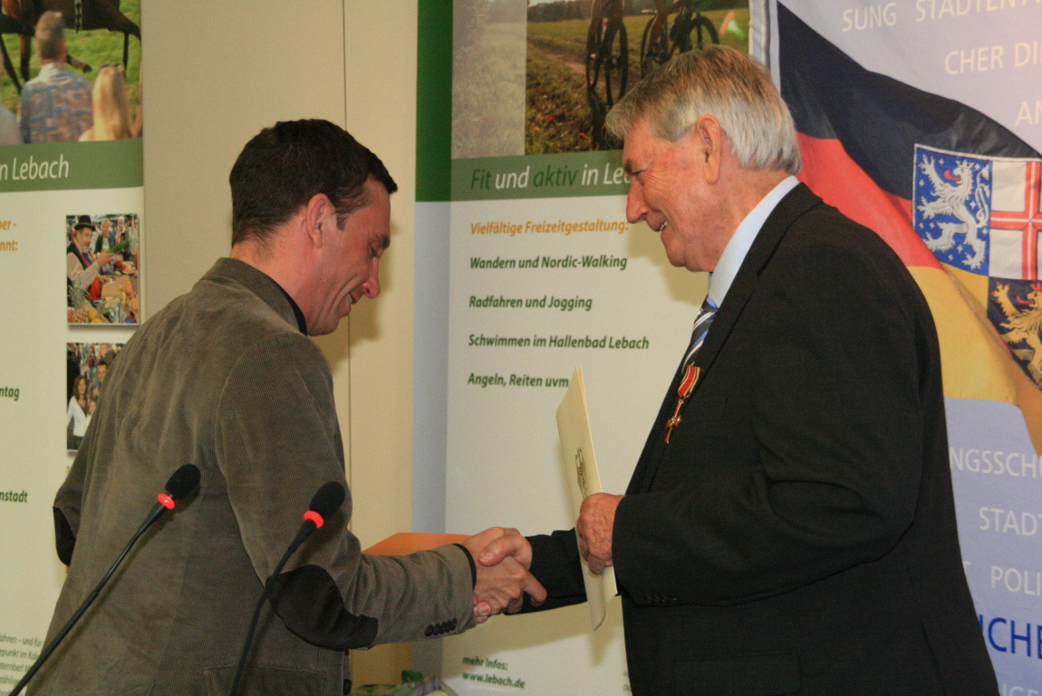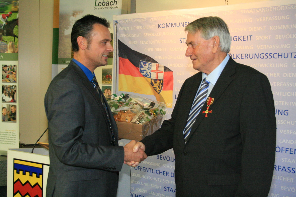 Monika Bachmann, Ministerin für Inneres und Sport, hat am 9. Oktober 2013, im Lebacher Rathaus, Edmund Bohlen aus Lebach-Niedersaubach für sein Engagement im Sport und in der Kommunalpolitik das Bundesverdienstkreuz am Bande des Verdienstordens der Bundesrepublik Deutschland überreicht.
