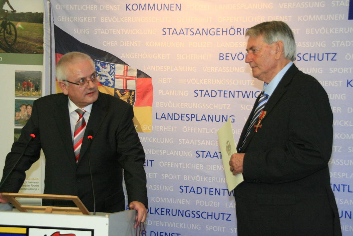 „Es ist wichtig solche Funktionäre wie Edmund Bohlen zu haben, die die Dinge durch persönlichen ehrenamtlichen Einsatz zum Funktionieren bringen. Edmund Bohlen hat für seinen Verein über das normale Maß hinaus Verantwortung übernommen, wofür er heute ausgezeichnet wird“, lobte Innenministerin Monika Bachmann.